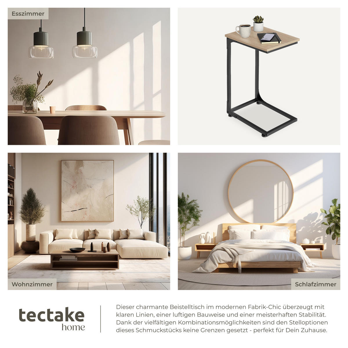 tectake BEISTELLTISCH Erie,40 x 30 x 63 cm,Industrial Holz hell, Eiche Sonoma