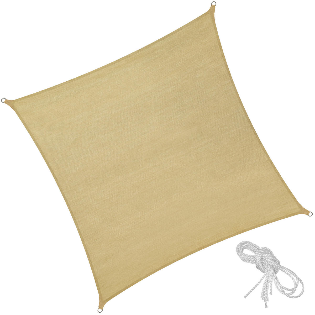 - Material: Textile Rohstoffzusammensetzung Sonnensegel und Spannseile 100 % Polyethylen, Ringe aus Edelstahl