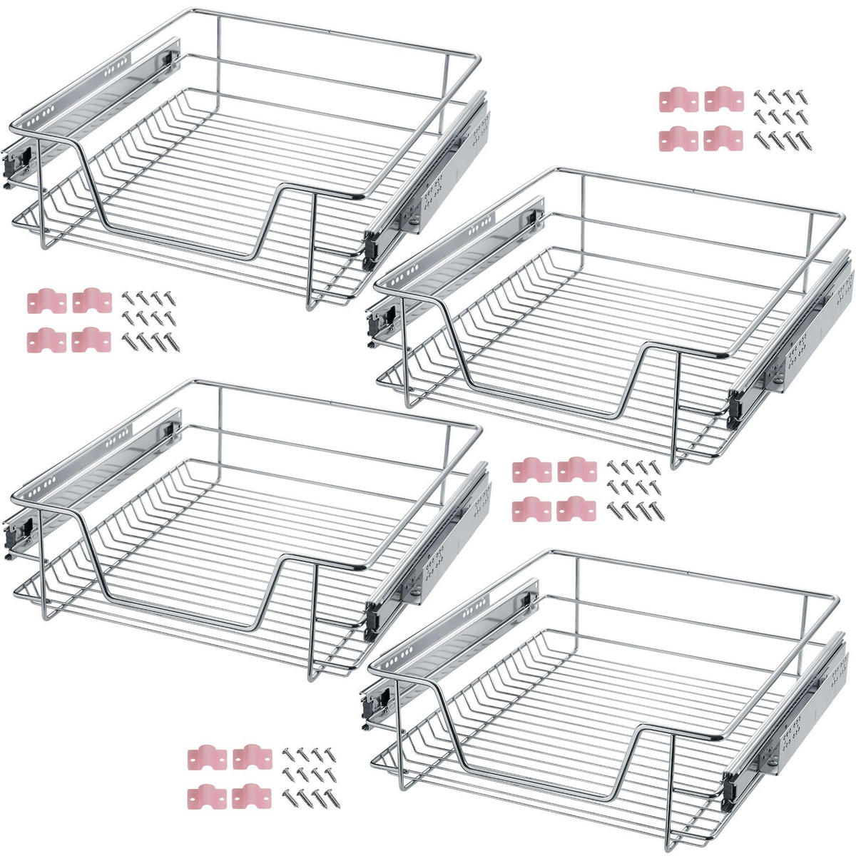 tectake TELESKOPSCHUBLADE 4er Set, einfache Montage, grau