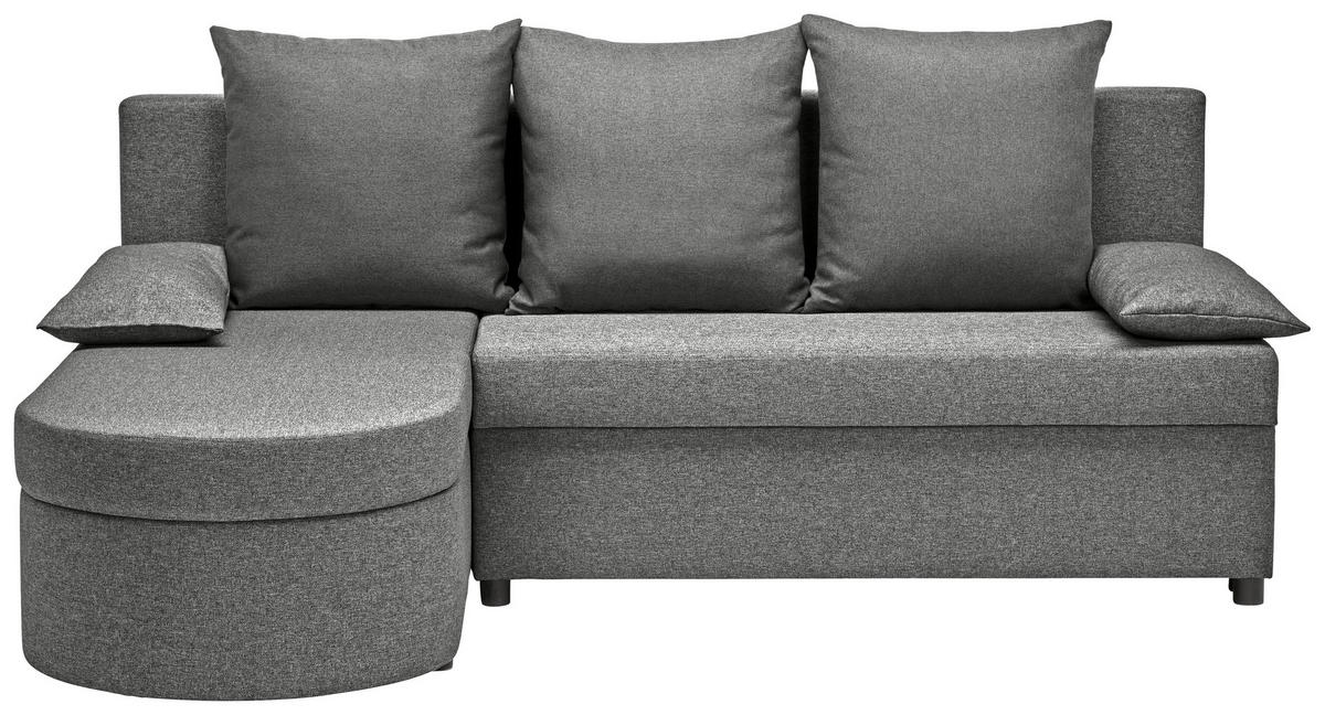 Ihr graues Ecksofa mit Webstoff-Bezug verführt dazu, behaglich die verdiente Me-Time zu genießen!