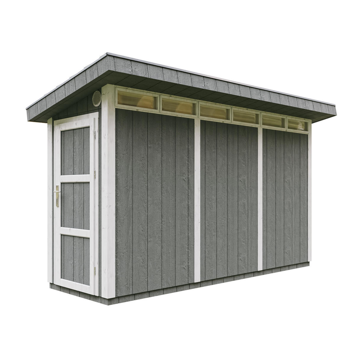 - Wandpaneele und Holzteile der Verkleidung müssen behandelt werden! Das Gartenhaus wird mit einem speziell ausgewählten Farbset verkauft.