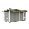 Technische Daten - Material: LP SmartSide- Holzbasis Wandpaneele - Plattenstärke: 10 mm - Außenmaße ohne Dach: L236 x B486 cm - Dachabmessungen: L279 x B530 cm - Fläche: 8.52 + 2.95 m² - Höhe: 237 cm/194 cm - Wasserdichtes Sperrholzdach OSB-3 (12 mm) inkl. grauer Dachschindeln - Die Dachtragfähigkeit darf 120 kg/m2 nicht überschreiten! - organisches Glasfenster: 14 x 53 cm - Türen: 154 x 180 cm l 77 x 180 cm mit abschließbarem Schloss - Montagesatz (Schrauben, Scharniere) - 15 mm LP ProStruct-Bodenbelag mit SmartFinish - Lüftungsgitter - Holzverkleidung für Ecken - Farben-Set: 4 Liter CAVERN STEEL Farbe für die Wandpaneele; 1 Liter weiße Farbe zur Behandlung von Holzteilen - Produktgarantie 5 Jahre; 15 Jahre Garantie für die LP SmartSide-Wandpaneele; 10 Jahre Garantie für das LP ProStruct Flooring.