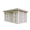 - Wandpaneele und Holzteile der Verkleidung müssen behandelt werden! Das Gartenhaus wird mit einem speziell ausgewählten Farbset verkauft.
