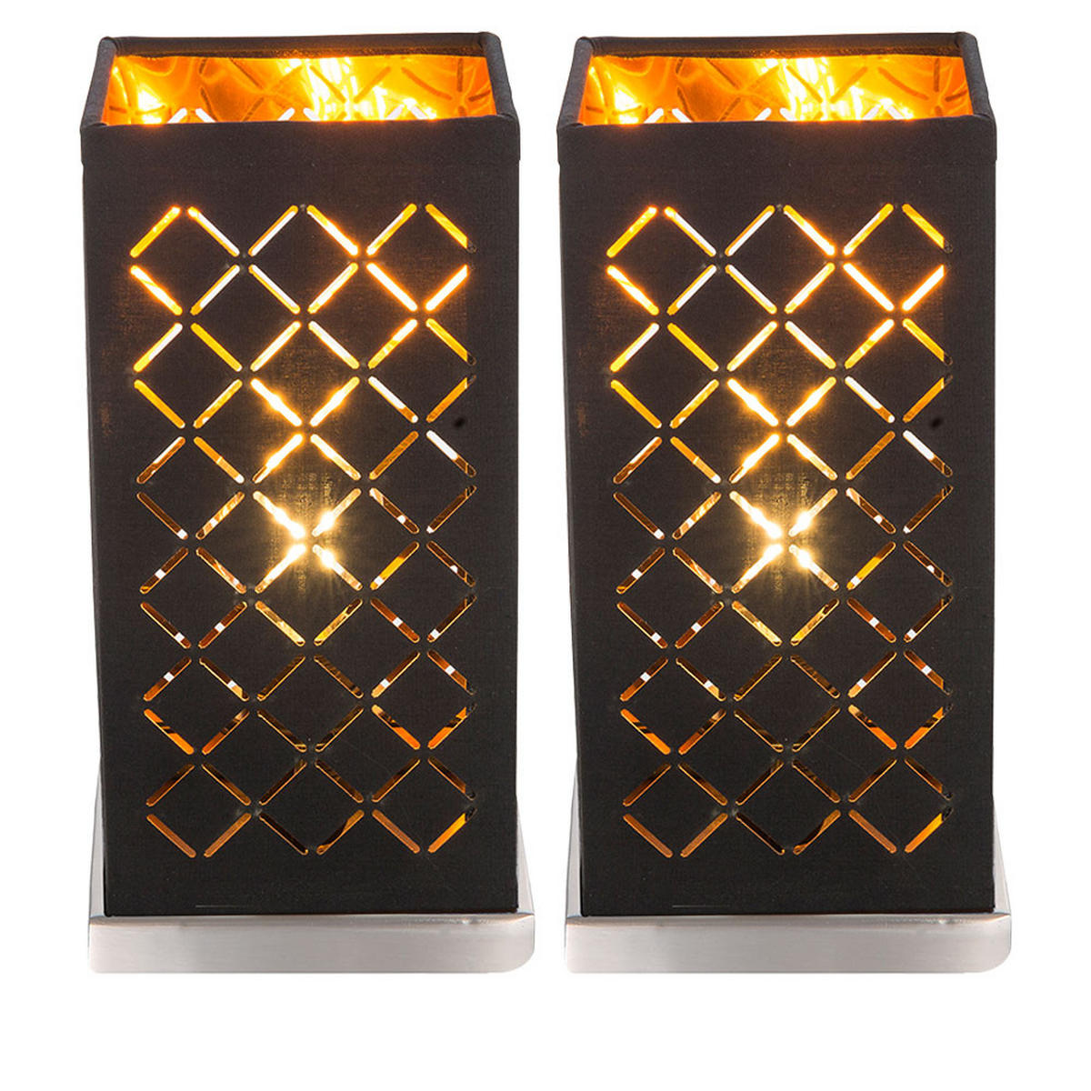 TISCHLEUCHTE CLARKE Textil Schwarz Gold 2er Set