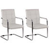 Diese Esszimmerstühle verleihen jedem Raum einen exklusiven Look und bestechen nicht nur durch ihre hervorragenden Sitzeigenschaften, sondern auch durch ihr modernes Design. Der gepolsterte Kunstledersitz bietet höchsten Sitzkomfort. Dank der Rückenlehne und der Armlehnen bieten diese Stühle hohen Sitzkomfort auch über mehrere Stunden hinweg. Für die gesteppten Bezüge der Sitze, Armlehnen und Rückenlehne wurde hochwertiges Kunstleder verwendet. Das freischwingende Gestell aus Metall, wahlweise in Chromoptik oder in Schwarz, ist sehr stabil und bekannt dafür, beim Sitzen und Bewegen angenehm mit zu wippen.
