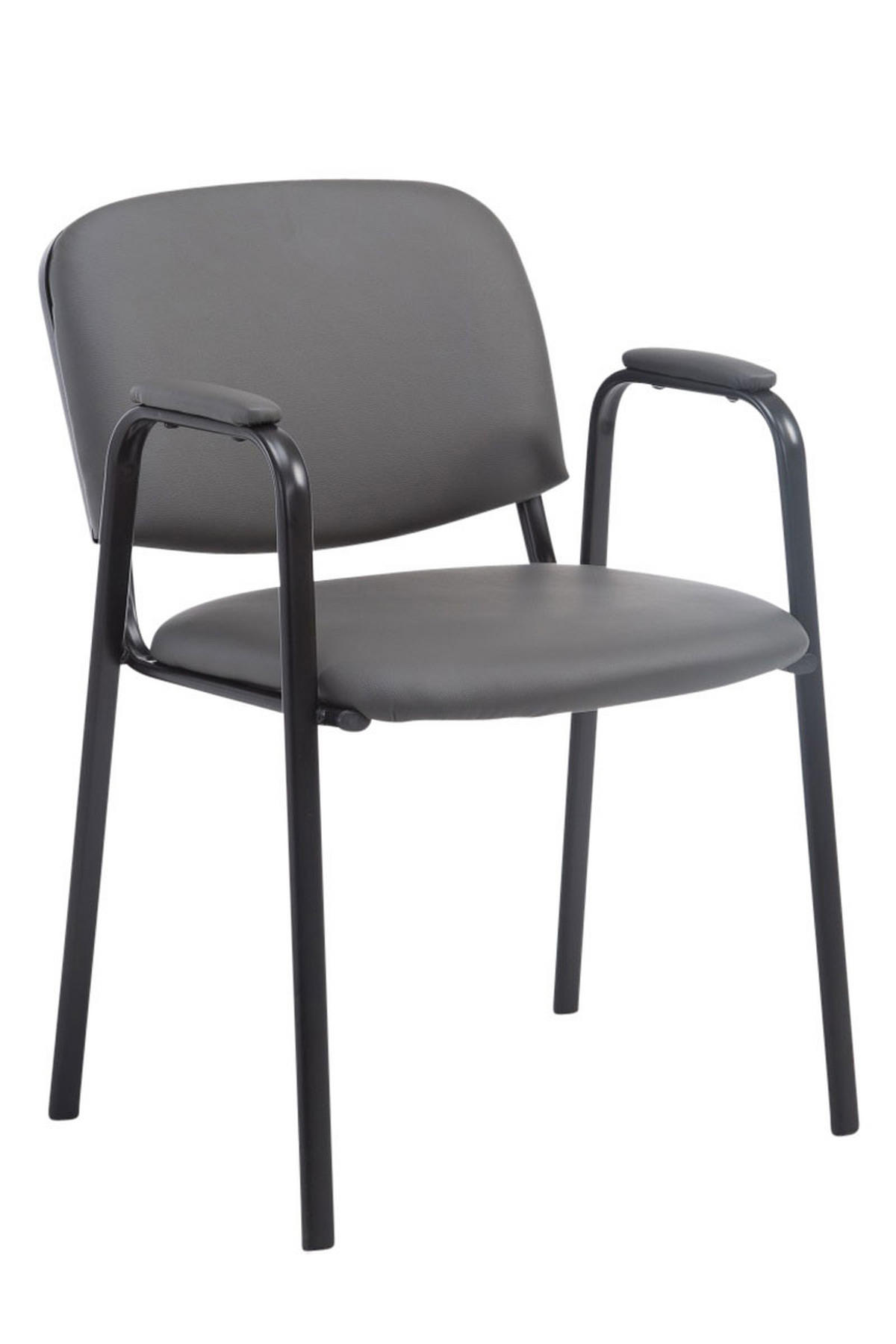 TPFLiving BESUCHERSTUHL Keen PRO, Kunstleder mit Armlehne - Gestell Schwarz / Bezug Grau