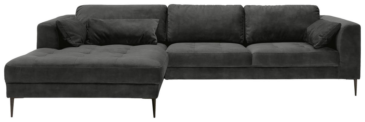Trendmanufaktur ECKSCHLAFSOFA LUZI Mikrofaser Anthrazit inkl. Rückenkissen, Nierenkissen, Bettkasten, Schlaffunktion, Rücken echt