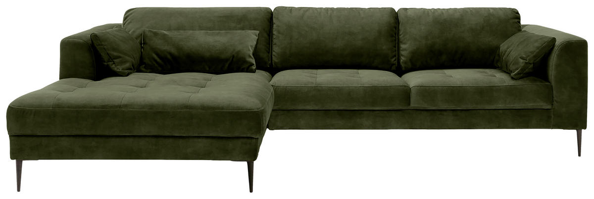 ECKSCHLAFSOFA LUMBER JACK Velours Dunkelgrün inkl. Rückenkissen, Bettkasten, Schlaffunktion, Stauraum