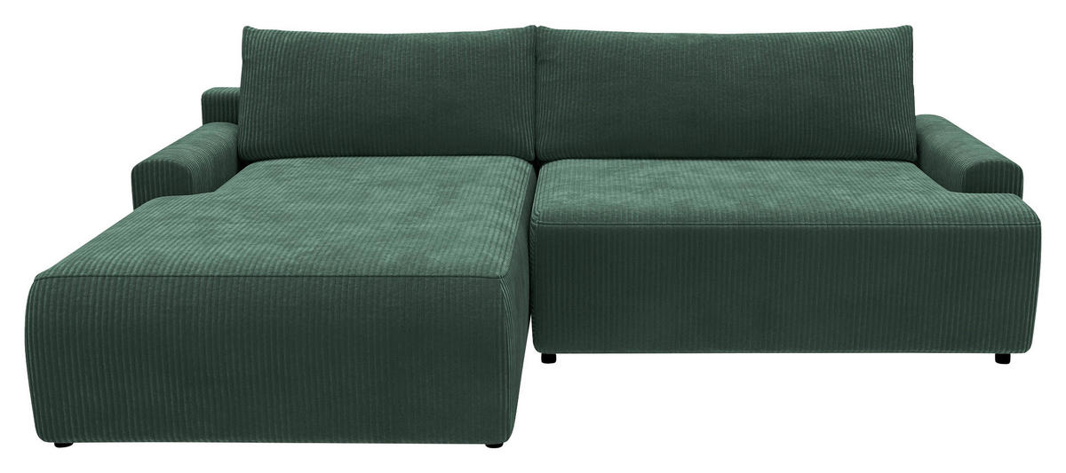 Trendmanufaktur ECKSCHLAFSOFA PRAG Cord Dunkelgrün inkl. Bettkasten