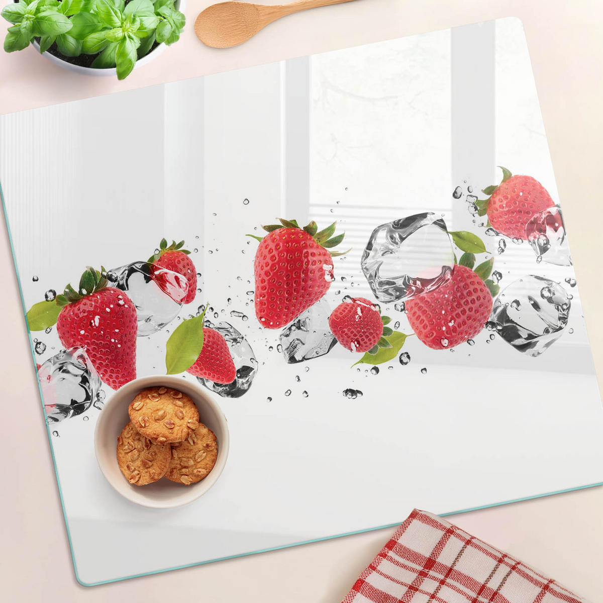 GLASPLATTE 60x52 cm Erdbeeren und Wasser - Rot, Glas (60/0.4/52cm) - TULUPTULUP