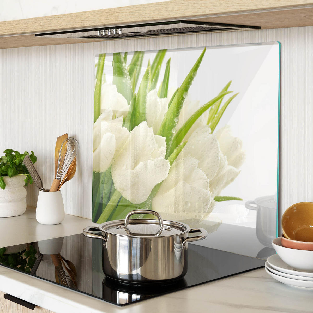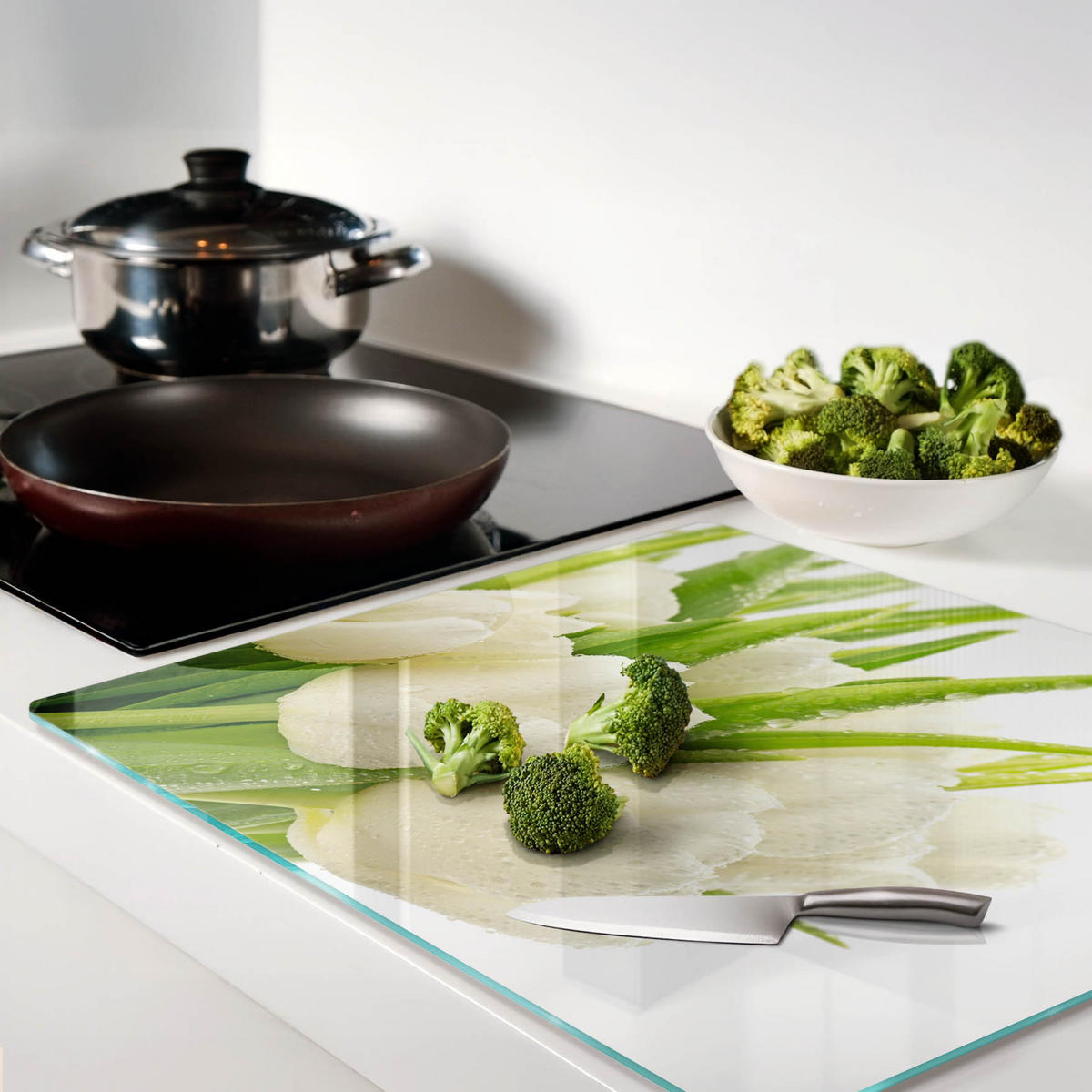 GLASPLATTE 60x52 cm Weiße Tulpen - Weiß, Glas (60/0.4/52cm) - TULUPTULUP