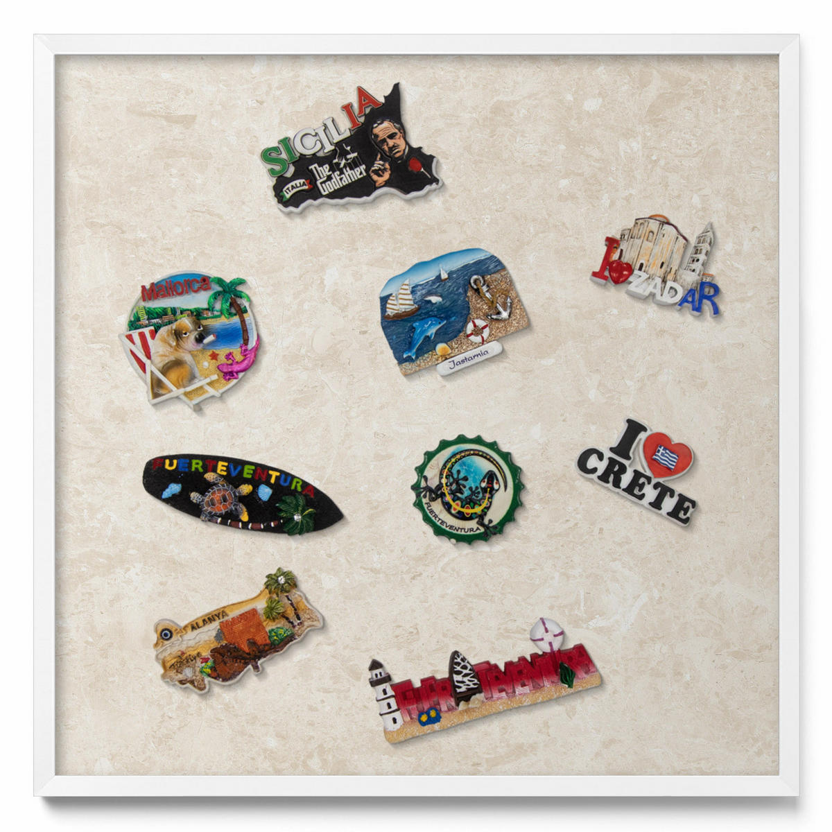 TULUP MAGNETTAFEL 50x50 cm Weißer Rahmen Eleganter Heller Stein