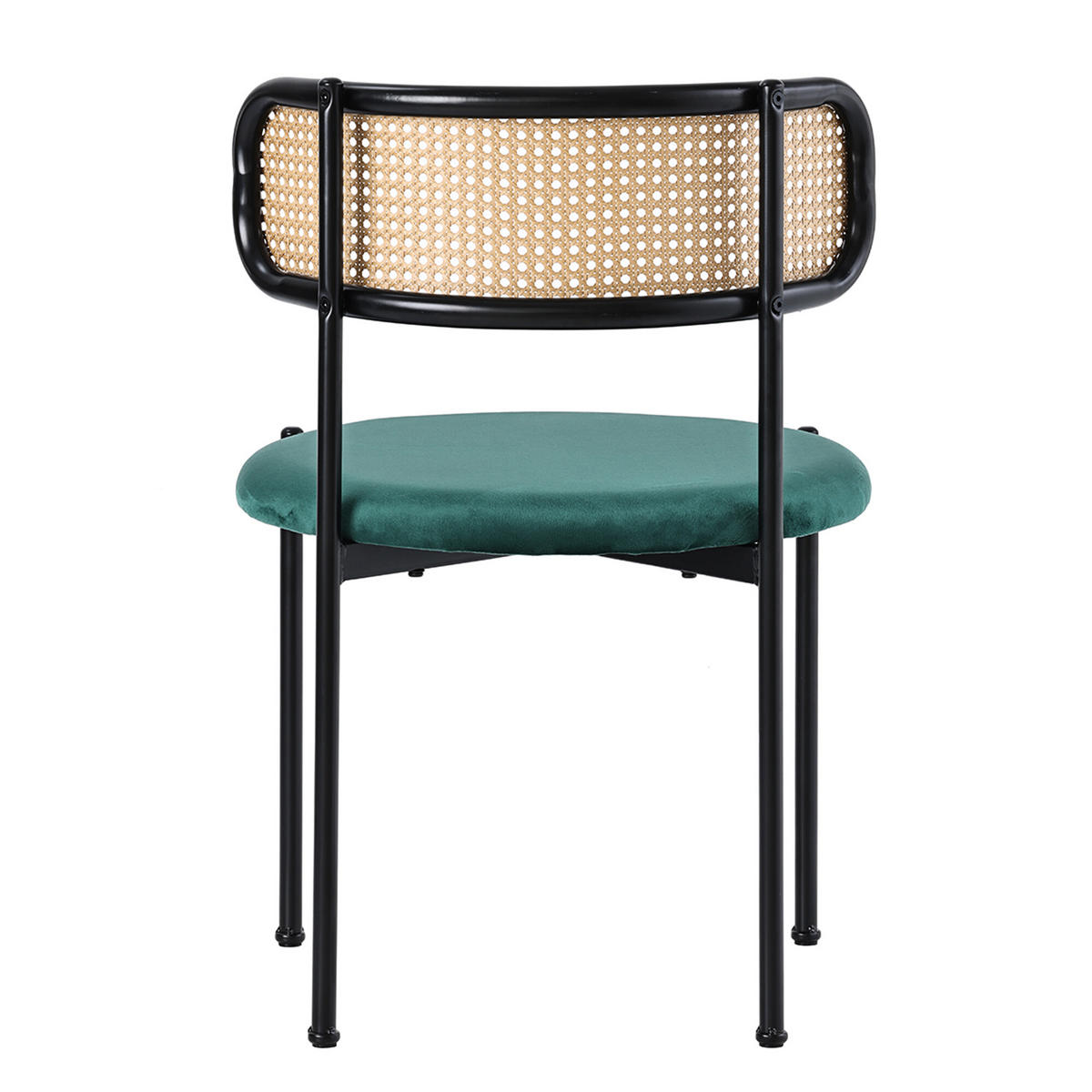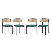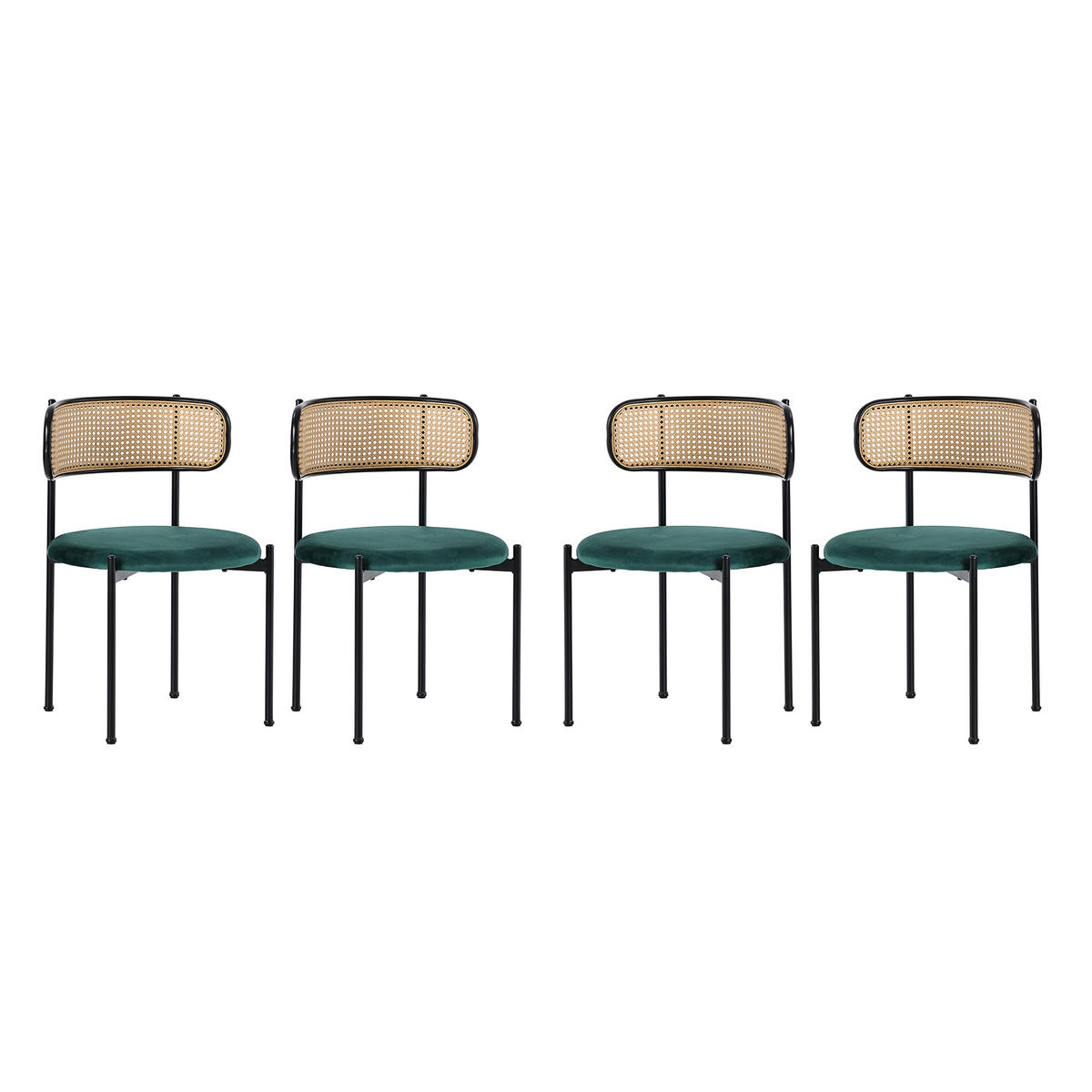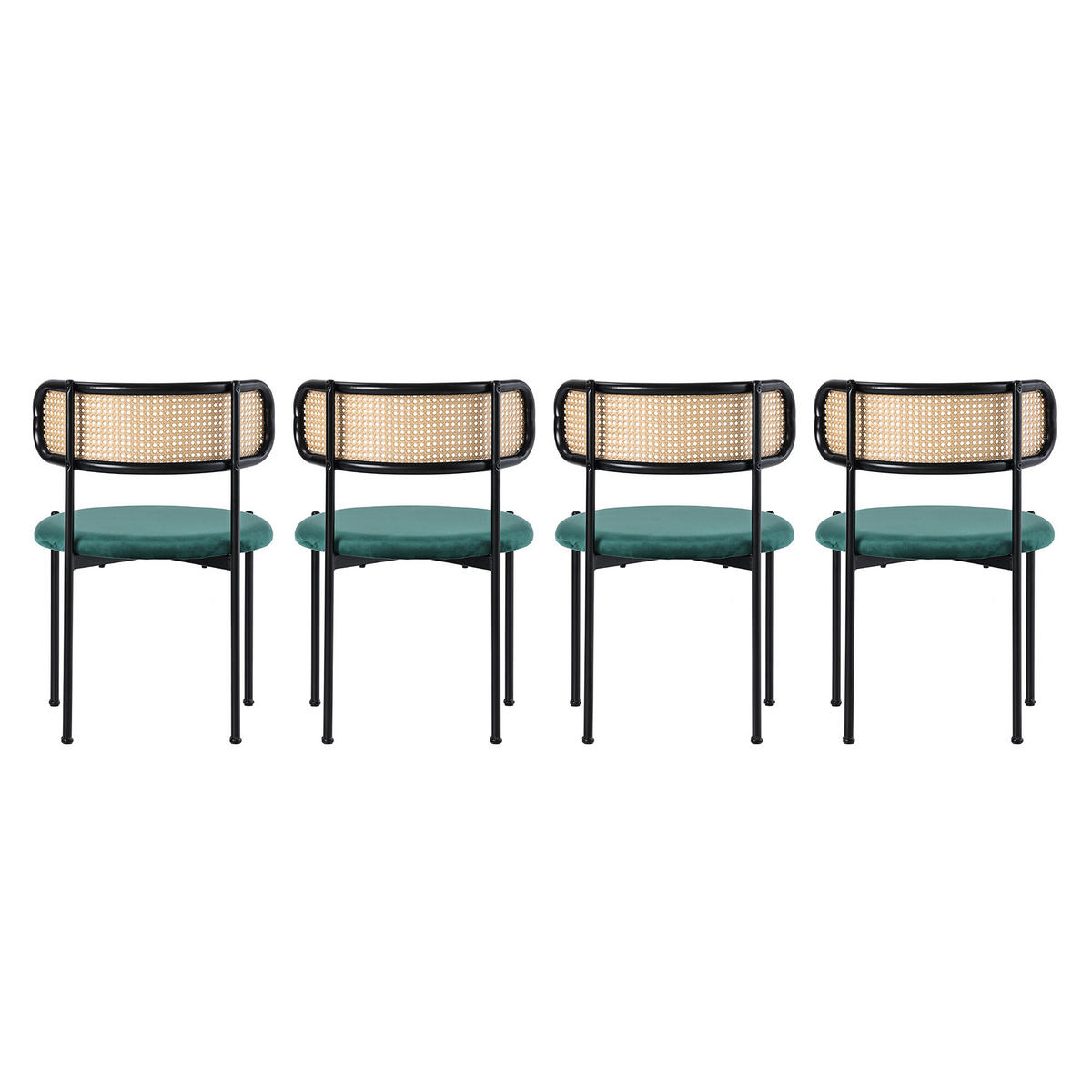 Set mit 4 Retro-Vintage-Esszimmerstühlen mit Rattanrücken und grünem Tannensamtsitz YUHRAR GREEN