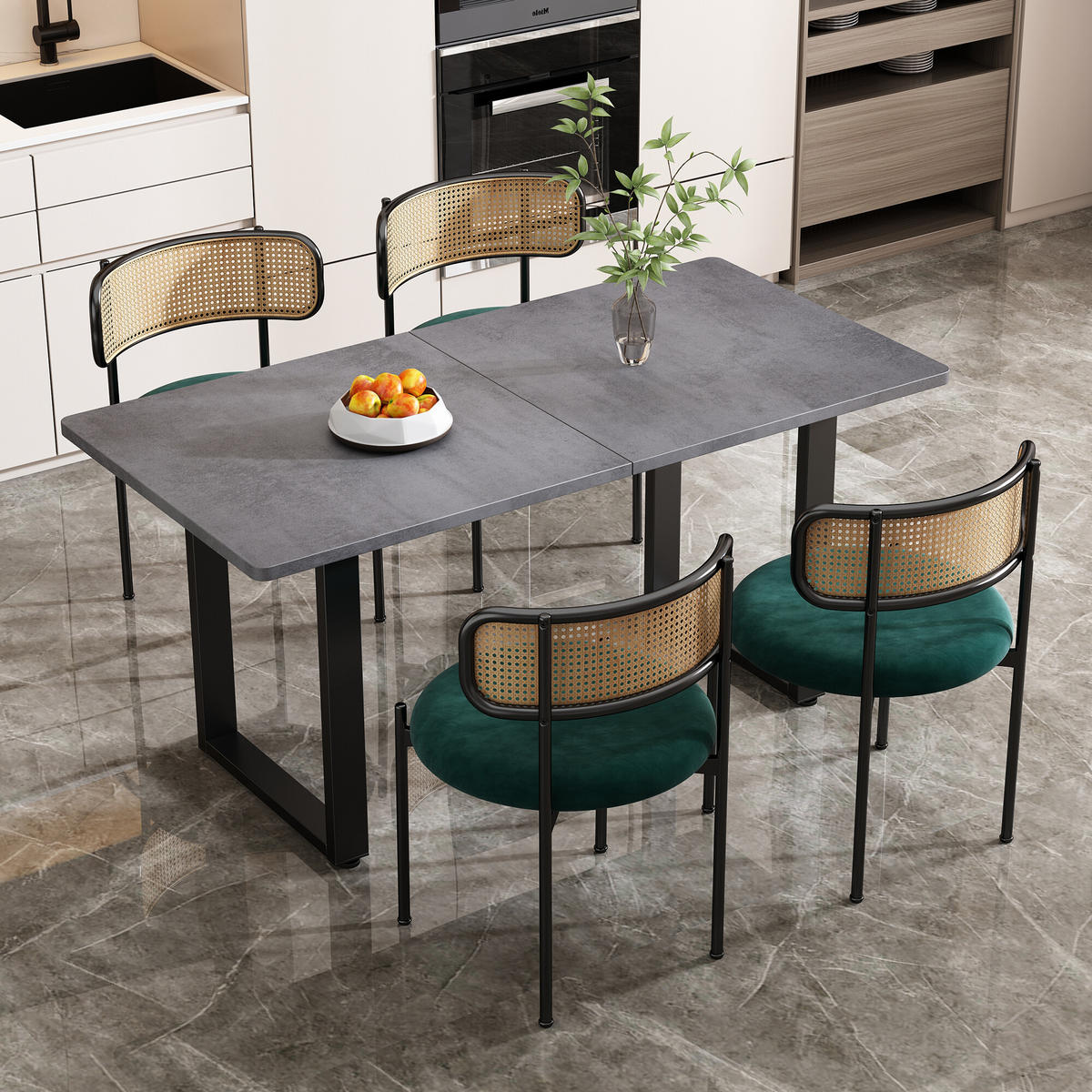 Rattan-Rückenlehne: Die Rückenlehne des Esszimmerstuhls verfügt über ein exquisites Rattan-Design, das nicht nur natürliche Schönheit aufweist, sondern auch guten Halt und Atmungsaktivität bietet.
