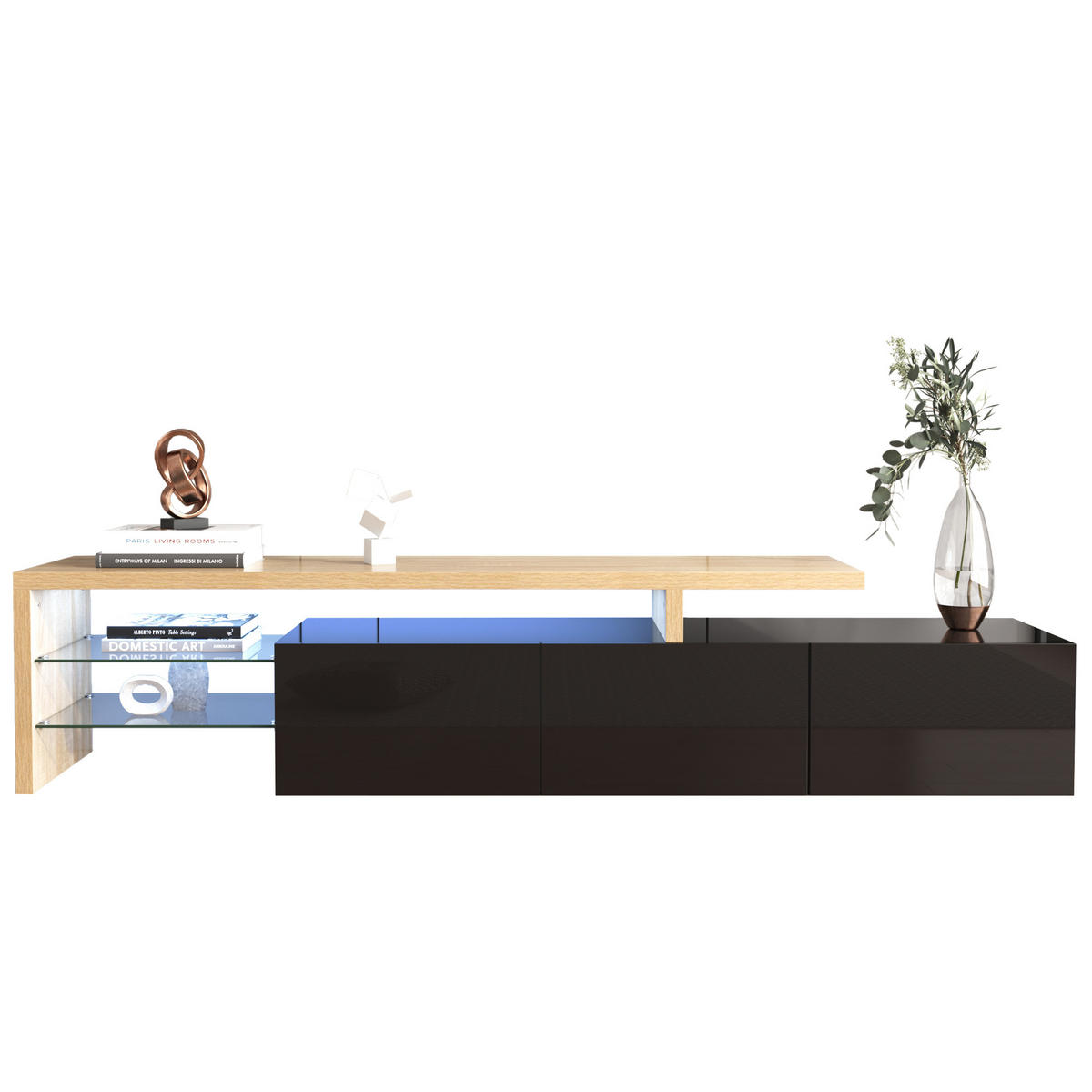 Urban Meuble LOWBOARD mit LED-Beleuchtung, 3 Schubladen und Offene Fächer