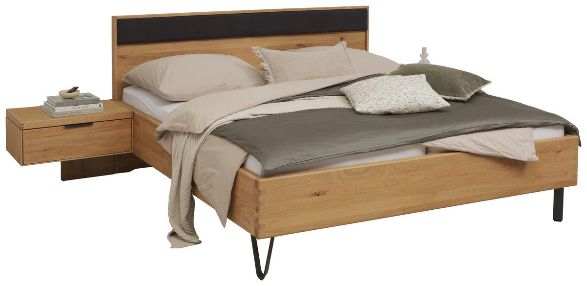 Wildeichefarben und Schwarz inklusive Nachtschrank begeistert als Ruhepol für entspannte Nächte.