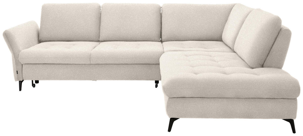 Gönnen Sie sich mit diesem cremefarbenen Ecksofa mit Bouclé-Bezug ein famoses Upgrade für Ihr geliebtes Heim!