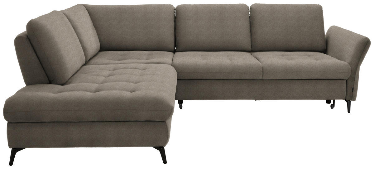 Sehenswerter Hingucker Die zurückhaltende Farbgebung in Greige verleiht dem Polstermöbel eine harmonische Optik und fügt sich schick in verschiedene Einrichtungstrends ein. Standfest und stylish vervollständigen die hohen Winkelfüße aus lackiertem Stahl in Schwarz das Design.