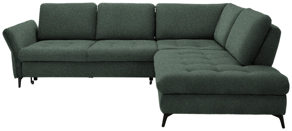 Mit diesem grünen Ecksofa mit Bouclé-Bezug landen Sie auf jeden Fall einen Volltreffer in Sachen Wohnglück!