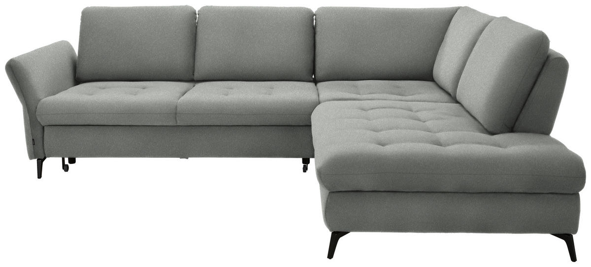 Ihr Aushängeschild, was Wohnbehagen betrifft: ein hellgraues Ecksofa mit Struktur-Bezug, das es in sich hat!