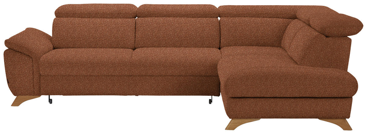 Ihr cognacbraunes Ecksofa mit Bouclé-Bezug verführt dazu, behaglich die verdiente Me-Time zu genießen!