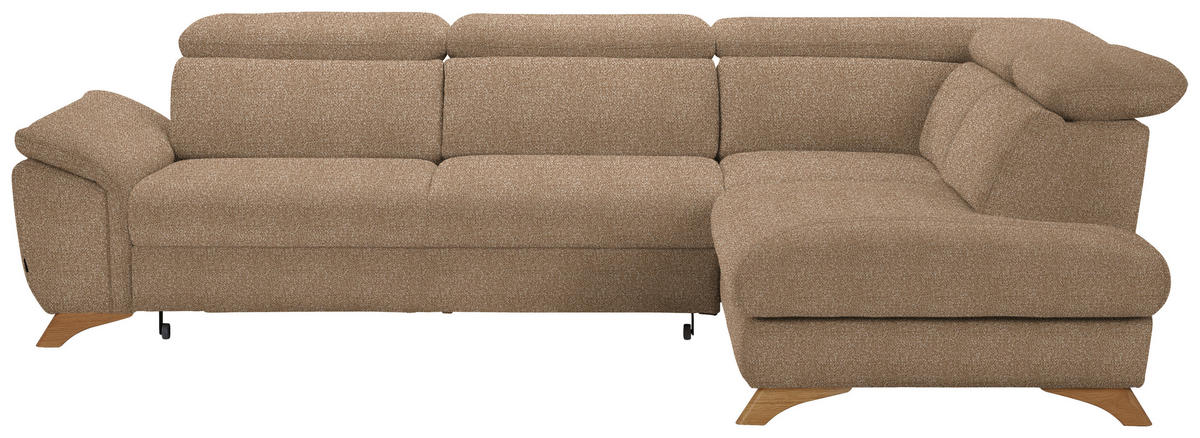 Verwöhnen Sie sich selbst mit diesem hellbraunen Ecksofa mit Bouclé-Bezug!
