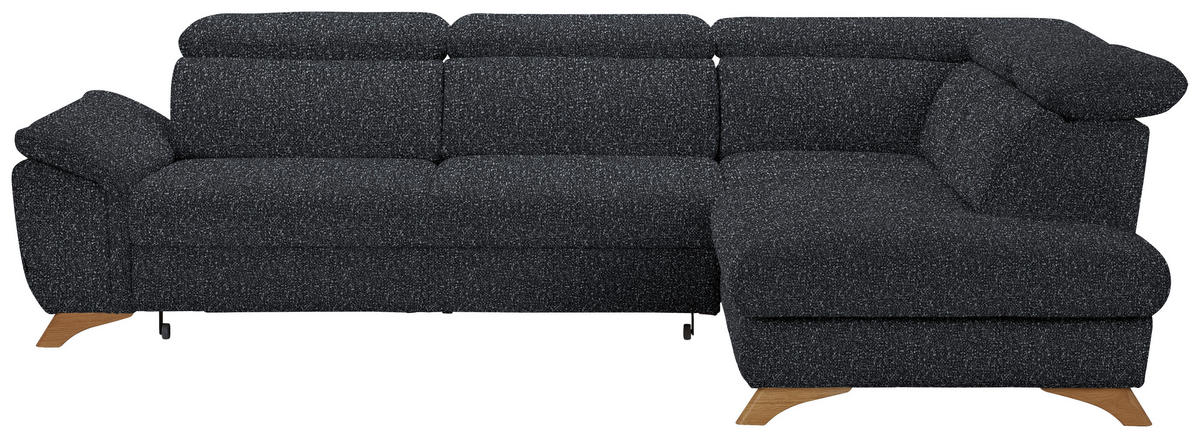Valnatura ECKSOFA MERCURY Schwarz Bouclé Rücken echt, Kopfteilverstellung, Kopfstütze
