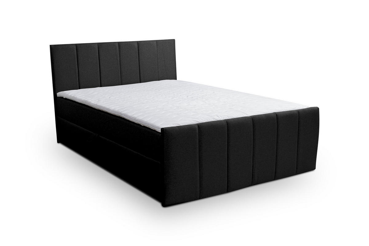 BOXBETT CLAUDINE mit 2 Bettkästen, 140x200, Farbe: Schwarz, Velourstoff, mit Bonell-Matratze inkl. Topper - Schwarz, Holz/Kunststoff (140/200cm) - VENASI MÖBELVENASI MÖBEL