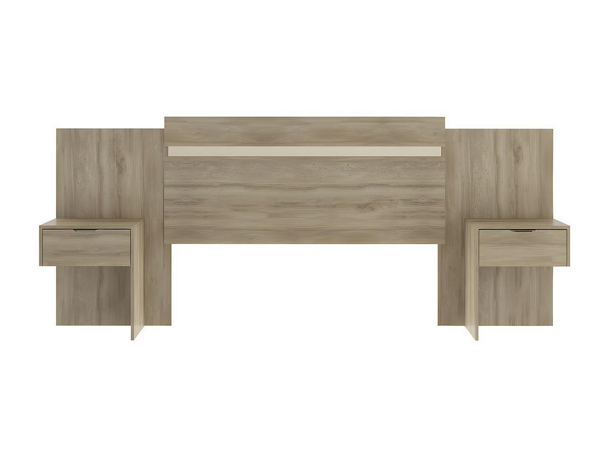Das Bett-Kopfteil PARATI sorgt durch die Nachttische mit Schubladen für Modernität und Platgewinn. Ausziehbar, Sie können es als 140 oder 160 cm breites Bett verwenden.