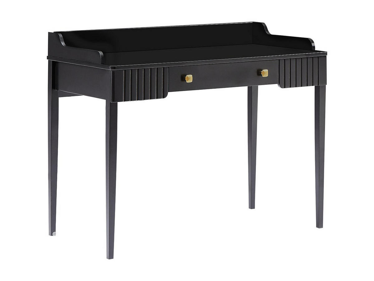 Der Konsolenschreibtisch RENEVI bietet Ihnen ein schlichtes Design, das sich wunderbar in Ihre Einrichtung einfügt! Mit einer großen Schublade, die durch goldfarbene Griffe veredelt wird, ist er perfekt für Ihren Arbeitstag.