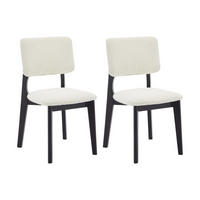Die Stühle JASMENA verbinden mit ihrer Sitzfläche aus weißem Bouclé-Stoff und den Beinen aus schwarzem Kautschukholz harmonisch Komfort und Schlichtheit. Ihr modernes Design verleiht Ihrem Ess- oder Wohnzimmer subtile Eleganz und schafft eine warme und einladende Atmosphäre. Nur als 2er- oder 6er-Set derselben Farbe erhältlich.