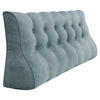 Dieses große konturierte dreieckige Rückenkissen bietet eine bequeme und stabile Rückenstütze für zwei oder mehr Personen gleichzeitig und eignet sich perfekt, damit Sie und Ihre Familie im Bett sitzend lesen oder fernsehen können. Ganz gleich, wie Sie sich auf dieses Lesekissen stützen, es verrutscht nicht und kollabiert nicht so leicht wie ein normales Kissen. Als Kopfteilkissen erfordert es keine Installation und ist einfach zu verwenden, während es die Lücke zwischen Kopfteil und Matratze überbrückt. In den kleinen Taschen auf beiden Seiten des Keilkissens können problemlos kleine Alltagsgegenstände wie Mobiltelefone, Fernbedienungen, Brillen und Stifte untergebracht werden. Bettkissen gibt es in 9 Standardgrößen, um den unterschiedlichen Anforderungen an die Bettbreite gerecht zu werden. Mit einem der 200 cm großen Kissen lässt sich das Schlafsofa/Einzelbett ganz einfach in ein Sofa/Couch verwandeln. Dieses Kissen wird häufig als Kissen für Studentenwohnheime, als tiefe Sofa-Rückenlehne, als Wohnmobil-Anhängerkissen usw. verwendet. Es kann auch helfen, Probleme wie Sodbrennen und postoperative Rückenschmerzen zu lindern. Weitere Einsatzmöglichkeiten warten darauf, von Ihnen entdeckt zu werden.