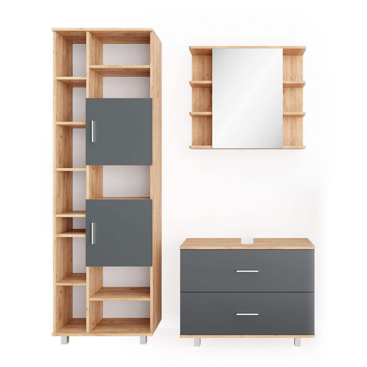Vicco BADMÖBEL-SET Ilias Anthrazit/Goldkraft Eiche 3 Teile, mit Hochschrank