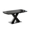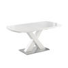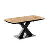 Der ausziehbare Esszimmertisch verfügt über einen X-Fuß gebettet auf einem Podest und ist ein praktisches Möbelstück für das Esszimmer.