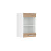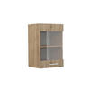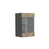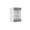 STILVOLL & PRAKTISCH: Der Hängeglasschrank bietet Platz für Gläser, Geschirr oder Dekoration – Glaselemente lockern die Front optisch auf und werten die Küche sichtbar auf.