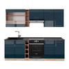 KÜCHENZEILE Fame-Line Grün-Gold Landhaus/Goldkraft Eiche 235 cm , AP Anthrazit - Honigeiche/Grün, Holzwerkstoff (235/81.6/60cm) - Vicco