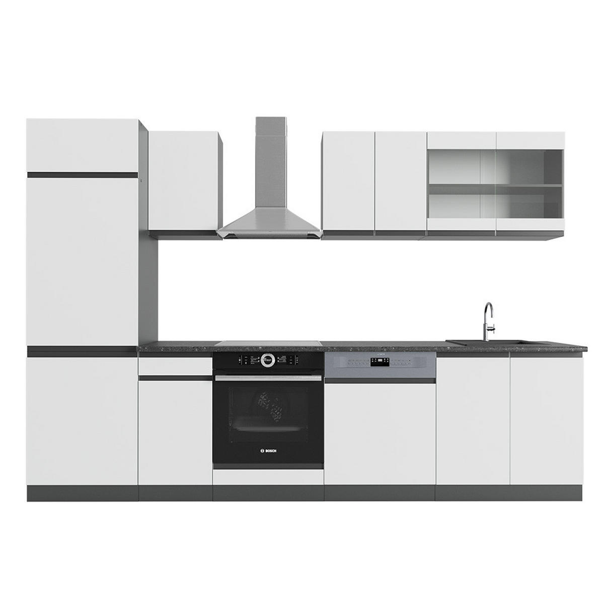 LIEFERUMFANG: Küchenblock ohne Arbeitsplatte, Montagematerial, Montageanleitung (Sofern nicht anders angegeben, gehören Elektrogeräte und Dekorationen nicht zum Lieferumfang)