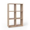 Dieses stehende Bücherregal bietet 6 offene Ablagen und Fächer für 30x30 Kartons und sorgt somit für reichlich Stauraum.