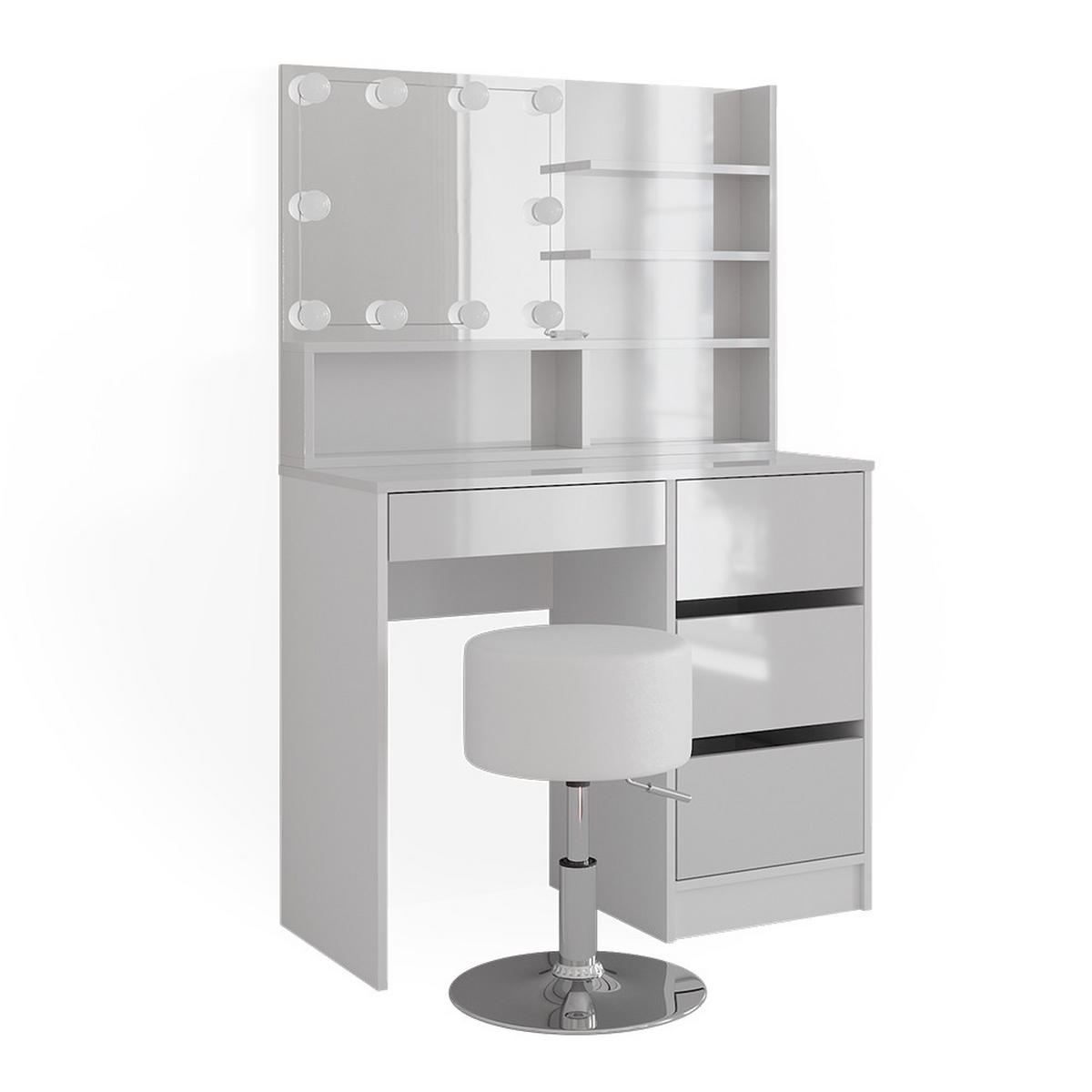 Vicco SCHMINKTISCH Sherry Weiß 90 cm mit LED Beleuchtung, Hocker und Spiegelregal