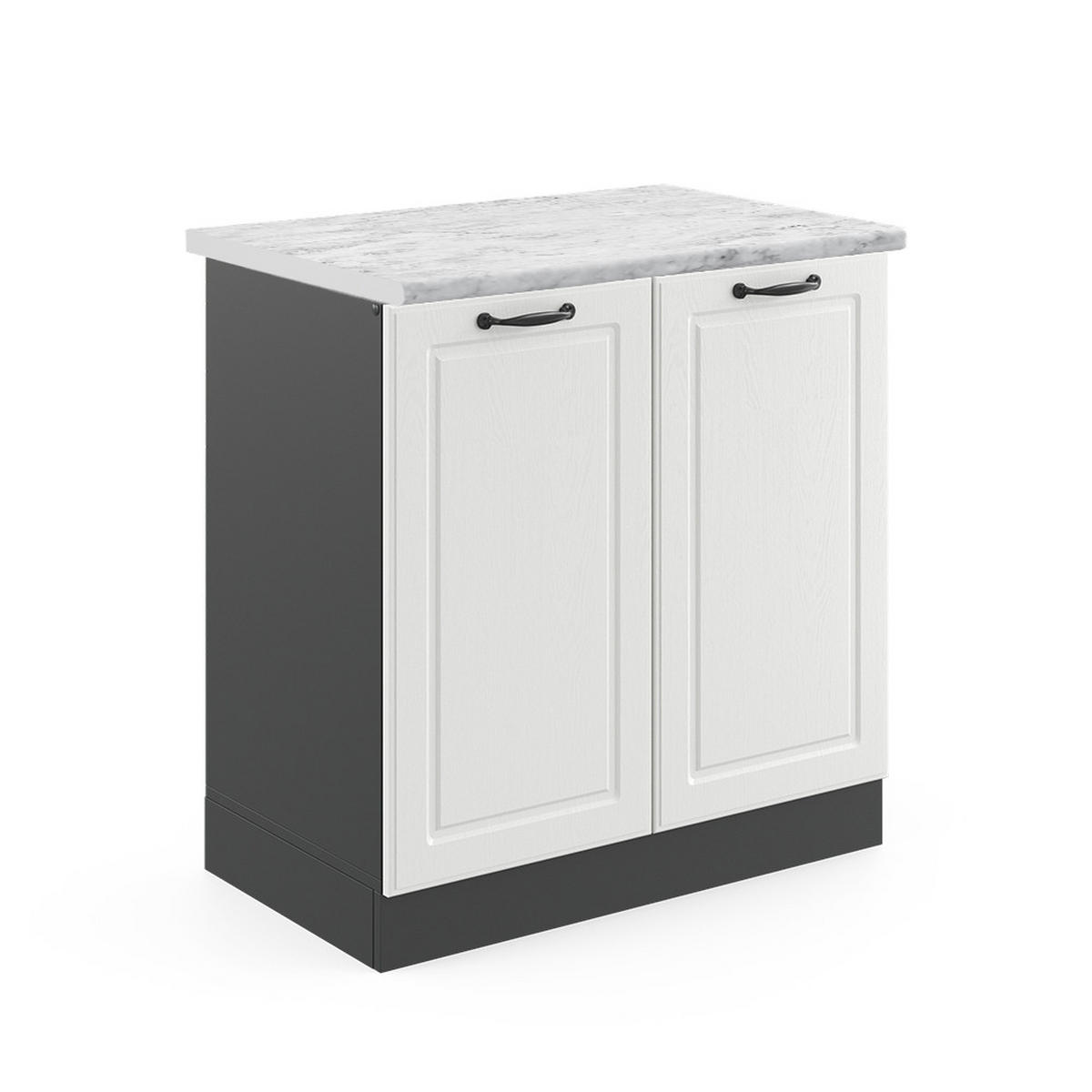 SPÜLENUNTERSCHRANK R-Line Weiß Landhaus 80 cm , AP Marmor - Anthrazit/Weiß, Holzwerkstoff (80/81.6/60cm) - ViccoVicco