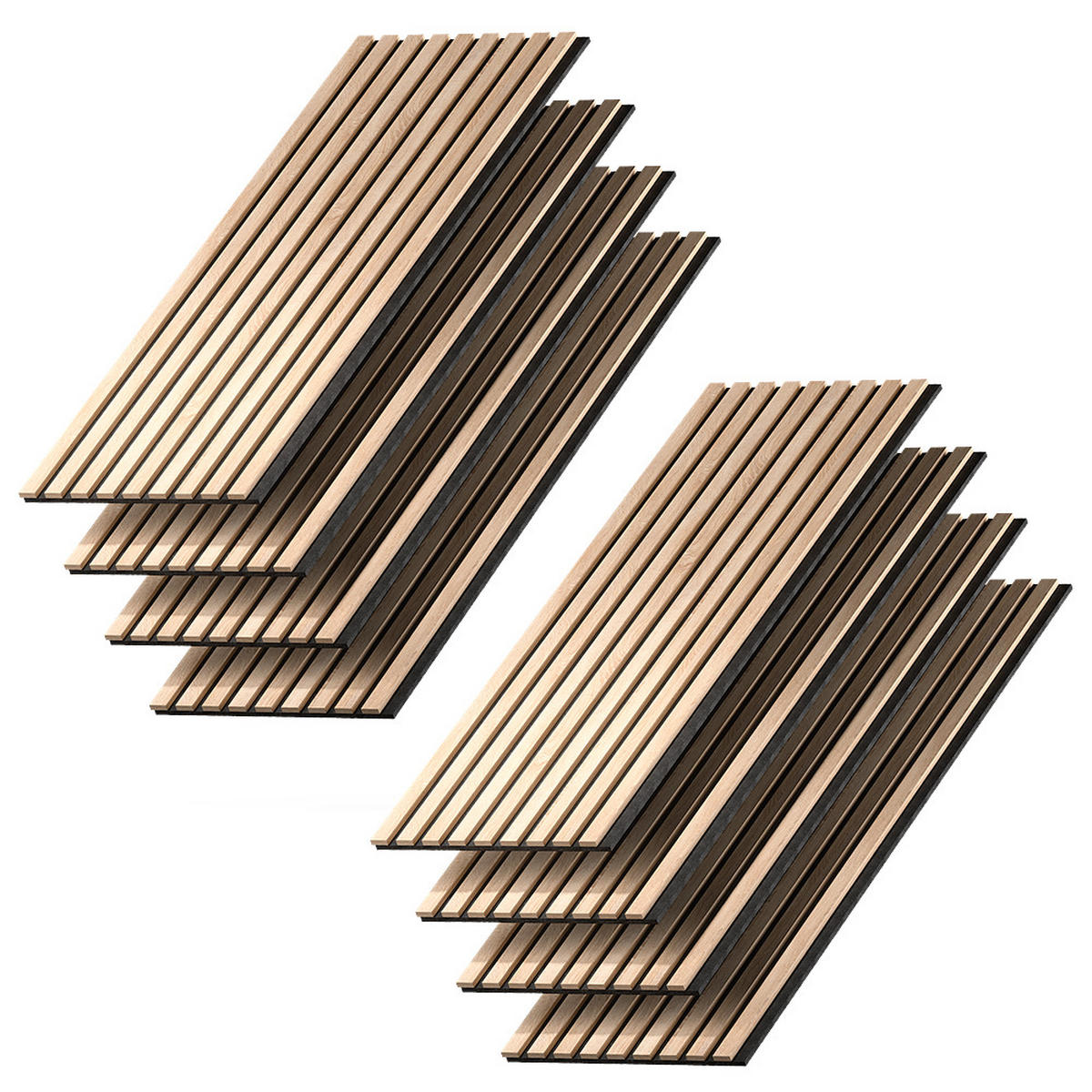 Akustikpaneele im 8er-Set mit natürlicher Eichenoptik – für stilvolle Wandgestaltung und spürbar bessere Raumakustik in Wohnräumen, Büros, Studios, Konferenz- oder Arbeitszimmern.