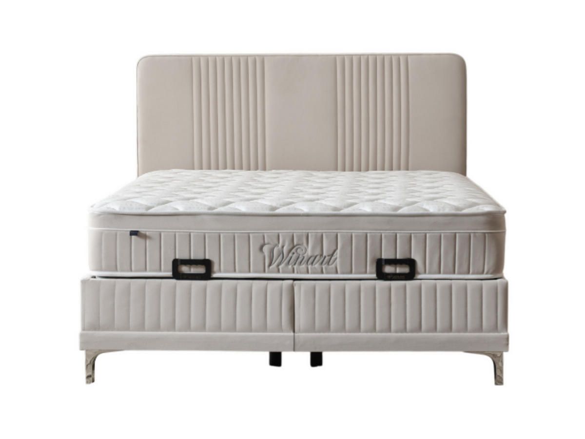 Im Alltag überzeugt Winart als Boxspringbett mit einem ausgewogenen Liegegefühl, bei dem Komfort und Unterstützung harmonisch zusammenspielen. Besonders praktisch ist die Bettbox mit Stauraumfunktion: Decken, Kissen oder Saisonwäsche lassen sich ordentlich im Bettkasten verstauen, sodass Ordnung leicht gelingt – ohne zusätzliche Möbel, die den Raum überladen. Das Set wirkt dadurch nicht nur stilvoll, sondern auch funktional und verlässlich für den täglichen Gebrauch. Abgerundet wird der Eindruck durch eine klare Formensprache und durchdachte Details, die das Bett dauerhaft gepflegt erscheinen lassen und die wohnliche Atmosphäre bewahren.