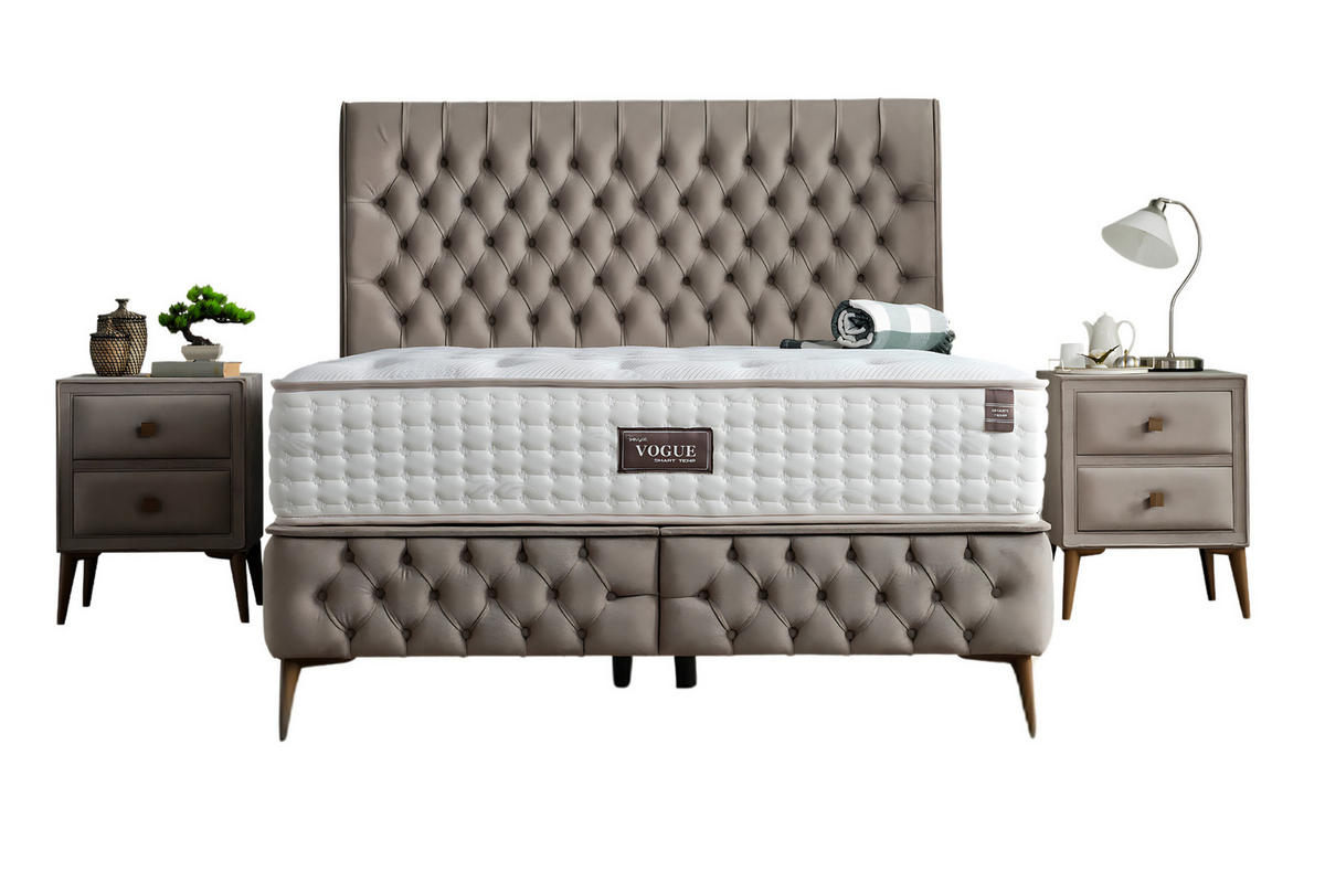 Bett Set Fashion steht für zeitloses Design und eine ruhige, gepflegte Raumwirkung im Schlafzimmer. Das hohe Kopfteil mit klassischer Knopfheftung wirkt vertraut und wertig und gibt dem Raum eine klare Ordnung, ohne aufdringlich zu sein. In Hellbraun gehalten, bringt das Modell Wärme ins Schlafzimmer und lässt sich stimmig mit Holz, Naturtönen und hellen Wänden kombinieren. Die klare Form der Bettbox unterstützt den ordentlichen Gesamteindruck und passt sowohl zu klassischer Einrichtung als auch zu modernen, ruhigen Konzepten. Im Alltag überzeugt das Bett Set mit einer integrierten Bettbox, die praktischen Stauraum für Decken, Kissen oder saisonale Heimtextilien schafft und das Schlafzimmer aufgeräumt hält. So entsteht ein Bett Set mit harmonischer Gestaltung und angenehmer Schlafzimmerwirkung.