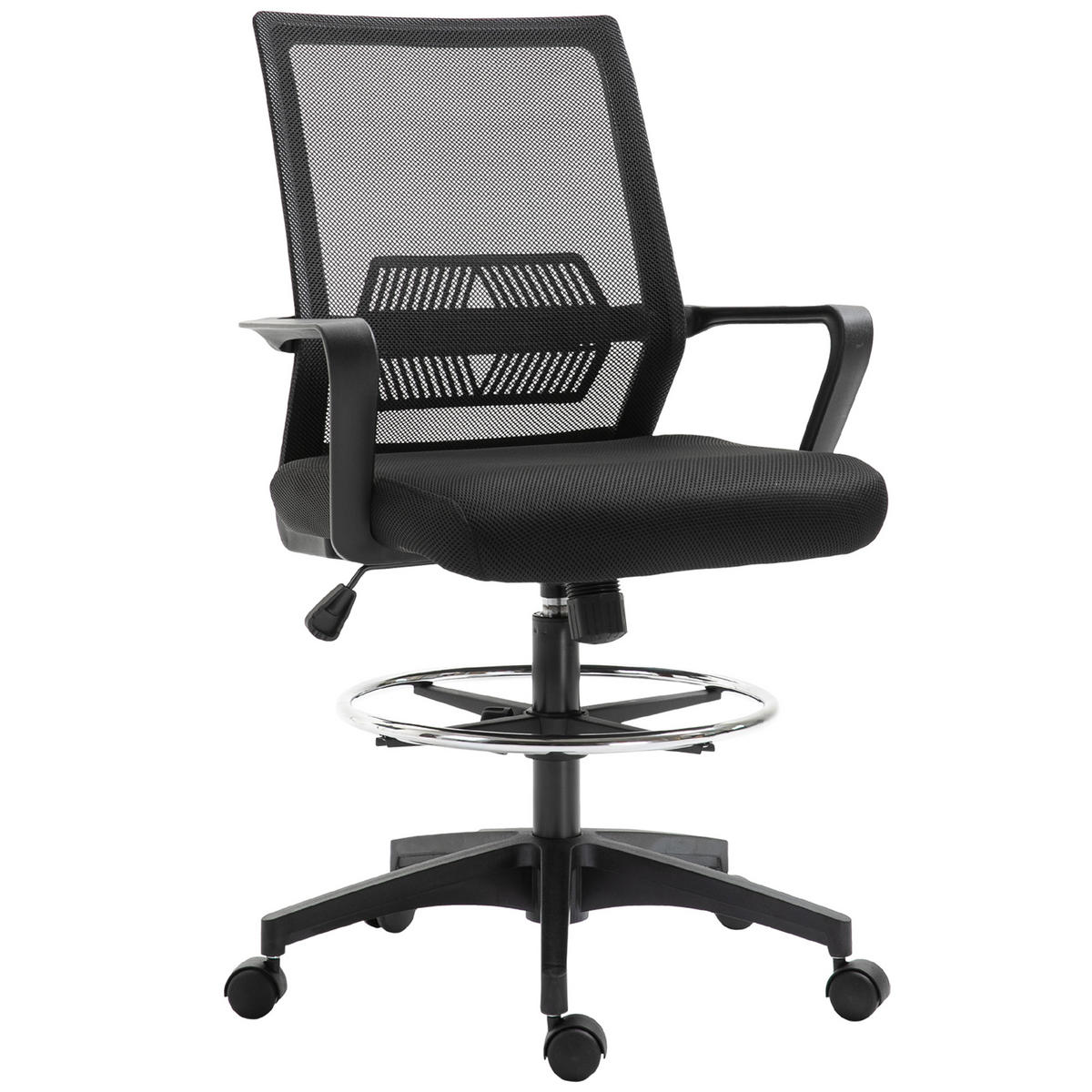 Leiden Sie unter Unbehagen an Ihrem Stehpult? Lange Sitzungen auf einem herkömmlichen Stuhl führen oft zu Schwitzen und unbequemen Beinhaltungen, was die Konzentration beeinträchtigt. Der Vinsetto Zeichenstuhl, entworfen für höhere Arbeitsplätze, mit verstellbarer Höhe und Fußstütze, bietet individuellen Komfort. Das luftige Mesh-Rücken sorgt für Kühlung. In diesem hohen Bürostuhl finden Sie Ihren produktiven Rhythmus, komfortabel und gut unterstützt.