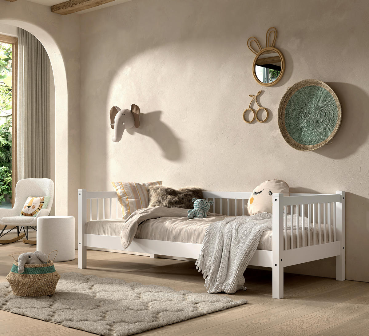 Weiß inklusive Holz-Kopfteil wird Entspannung großgeschrieben.