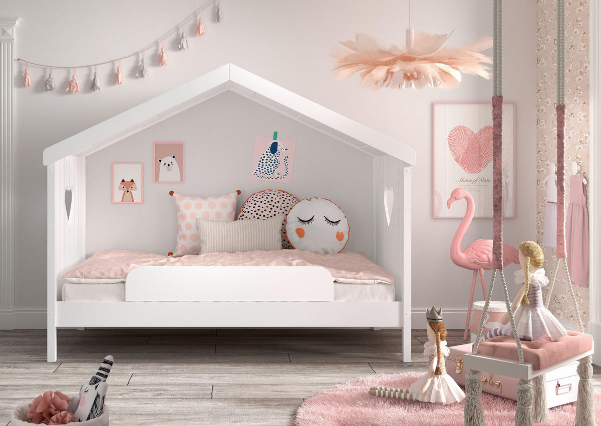 Vipack HAUSBETT 90/200 cm, in Weiß, Absturzsicherung, Rollrost