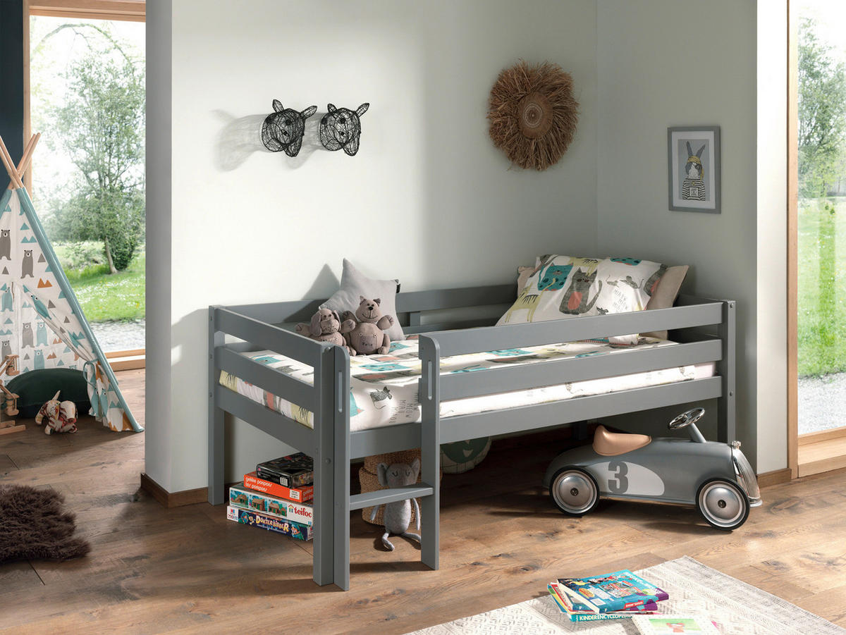 Rausfallschutz einen sicheren Rahmen beim Schlummern. Wenn der Tag Pause macht, überzeugt dieses VIPACK Hochbett (ca. 90 x 200 cm) in Grau inklusive Absturzsicherung und Rollrost als wundervolles Relax-Upgrade!