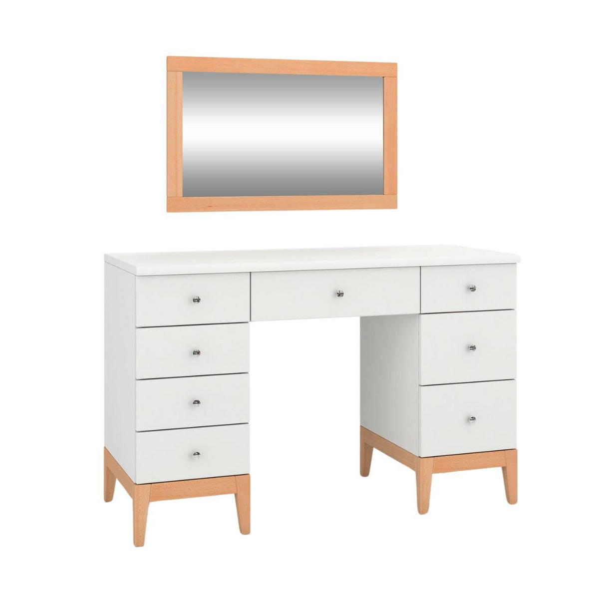 Material: Massives Buchenholz (Basis in Naturfarbe) und Kiefernholz (Korpus in Weiß)