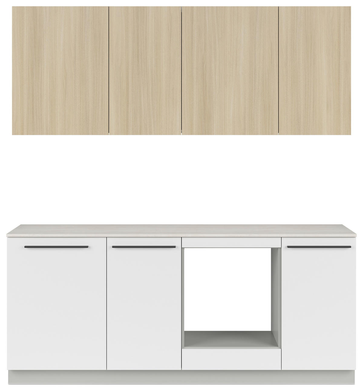 - Nicht im Lieferumfang enthalten: Armatur, E-Geräte, Nischenrückwand, Spüle, Ab- und Überlaufgarnitur, Dekoration