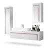 Stauraum: Das geräumige Badmöbelset Aloha bietet reichlich Platz für Ihre Badezimmerutensilien. Es umfasst einen hängenden Waschbeckenunterschrank mit einer Klappe und zwei Hängeschränke, die Ihnen zusätzlichen Stauraum bieten.